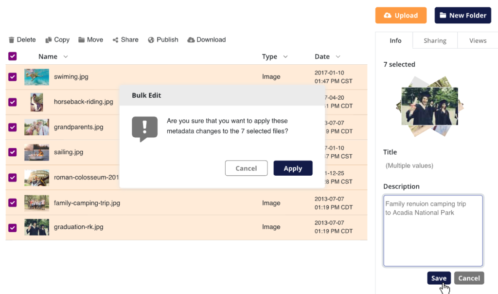Additionally, our metadata entry will soon allow for bulk editing of multiple files’ metadata in response to requests we received from our members. This forthcoming feature will allow you to add or replace the entries for metadata fields for multiple files at a time, as well as change the titles of the files to make them sequential or follow a certain format. Bulk metadata editing is currently in development, and we hope to release the feature later in 2023.