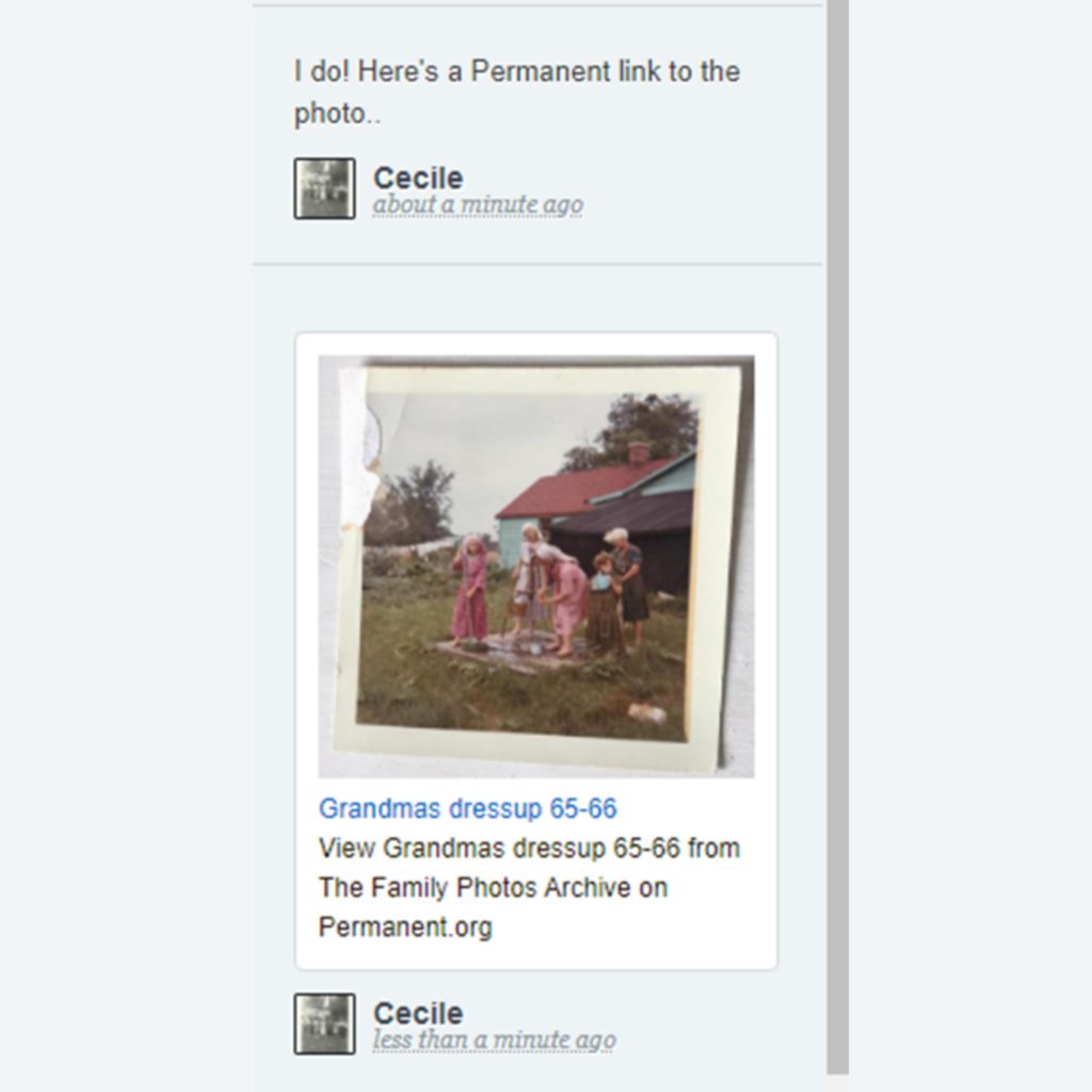Permanent.org, or more to the point, the power of Permanent.org lies with much more than just sharing a link to a photograph.  The power is in the linking directly to a downloadable copy that can be included in my digital storyboard.